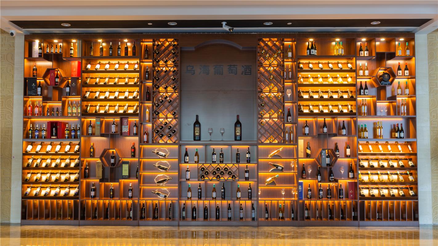 烏海沙漠葡萄酒集中展示墻。
