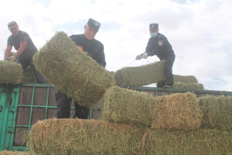 今年以來,內(nèi)蒙古自治區(qū)西部的阿拉善盟持續(xù)高溫少雨,阿拉善左旗蘇宏圖地區(qū)草場退化嚴(yán)重,駝、羊等牲畜草料嚴(yán)重匱乏,影響了牧民正常生產(chǎn)生活。8月9日,從甘肅省購置的草料順利抵達(dá)蘇宏圖,但是由于缺少精壯勞動力,牧民們望著一車車救命的草料卻犯起了難。正當(dāng)大家一籌莫展之際,派出所聞訊組織6名民警組成黨員先鋒隊(duì)投入勞動,經(jīng)過3天的努力,成功將70噸1200捆草料分裝到牧民車上,受到群眾的一致好評。(牛鑫 肖鵬 梁鎮(zhèn))