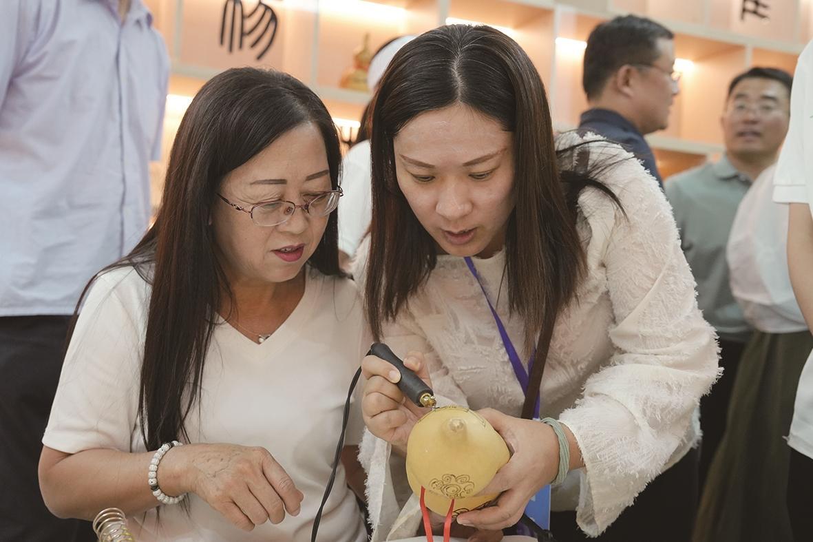 觀摩嘉賓體驗(yàn)非遺燙畫(huà)。