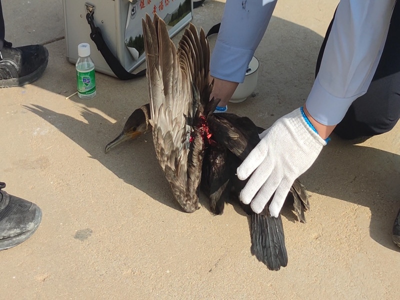 經林業(yè)部門工作人員鑒定,該鳥為國家二級保護動物鸕鶿,又稱魚鷹,尚處幼年,成年鸕鶿體長可達1.2米,善于捕魚,主要棲息在東北、內蒙古及新疆西部等地。目前,受傷鸕鶿已移交林業(yè)部門進行進一步救助,待傷勢痊愈后放歸自然。