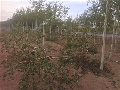 民警趕到現(xiàn)場(chǎng)檢查發(fā)現(xiàn),32棵6年生的河北楊及1棵金葉榆被撞倒,肇事車輛不知所蹤,現(xiàn)場(chǎng)只留下車輛紅色前保險(xiǎn)杠殘片和15米長(zhǎng)的車輛輪胎痕跡。
