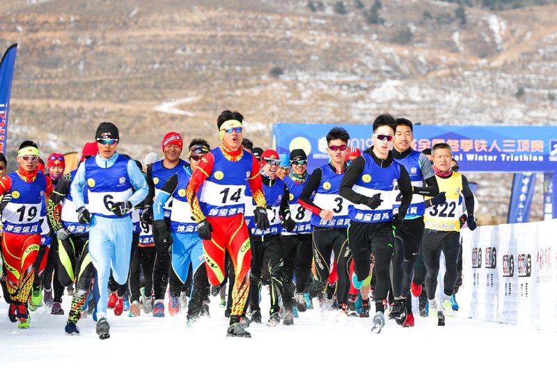 2月24日,參賽選手在冬季鐵人三項賽跑步比賽中。當日,2019年全國冬季鐵人三項賽在烏蘭察布市涼城縣岱海國際越野滑雪場開賽,比賽包括跑步、山地自行車和越野滑雪三個比賽項目,設置男女子精英組和男女子公開組,吸引了來自北京、黑龍江、寧夏等地的120余名選手參賽。這是我區(qū)首次舉辦全國冬季鐵人三項賽,此舉將進一步豐富我區(qū)冬季體育運動項目,推動冰雪運動發(fā)展?!?nèi)蒙古日報社融媒體記者 于濤 攝