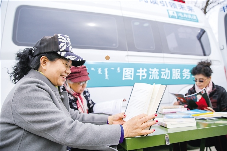 4月10日,首府市民在位于烏蘭夫紀念館的圖書流動服務(wù)車上借閱圖書。當(dāng)日,呼和浩特市圖書館圖書流動服務(wù)車開啟“公交服務(wù)”模式,第一站駛進了烏蘭夫紀念館。據(jù)了解,圖書流動服務(wù)車裝載各類新書2000余冊,功能齊全,設(shè)施先進,車內(nèi)裝備自助借還機、自動化遮陽棚、電視及書架、坐席等,是一座流動的圖書館,方便讀者就近借還圖書。