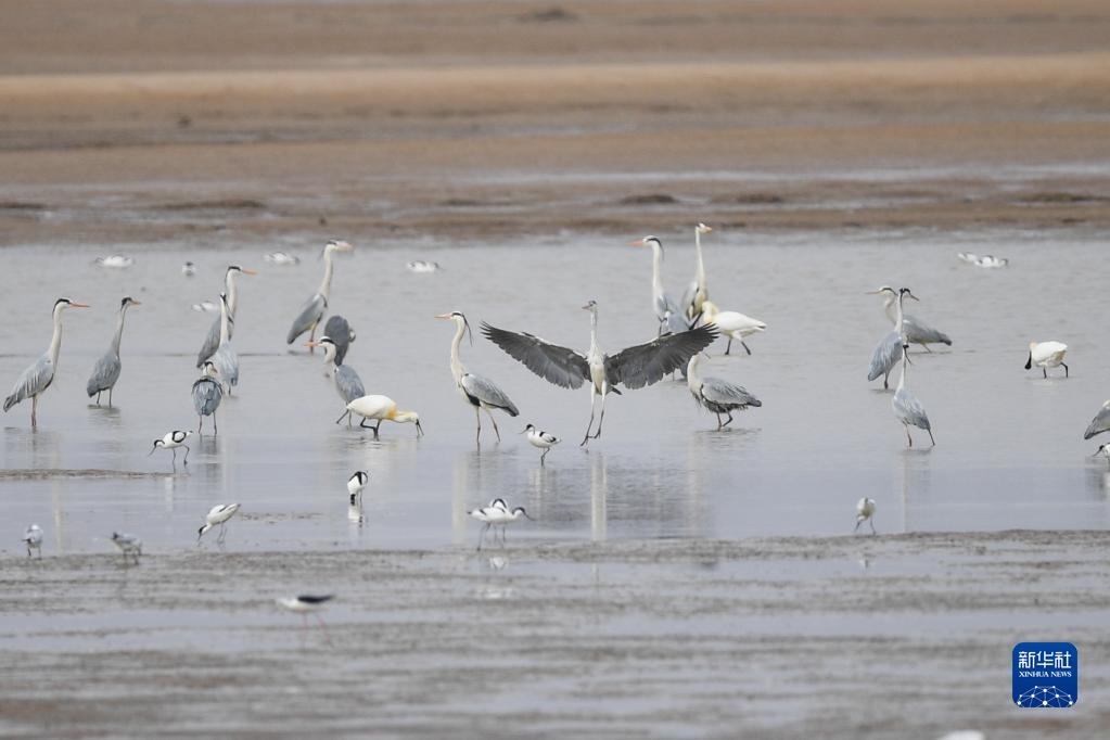 隨著氣溫回升,內(nèi)蒙古呼和浩特市土默特左旗海流水庫迎來了大批遷徙候鳥。它們在這里休憩覓食,為海流水庫增添勃勃生機。