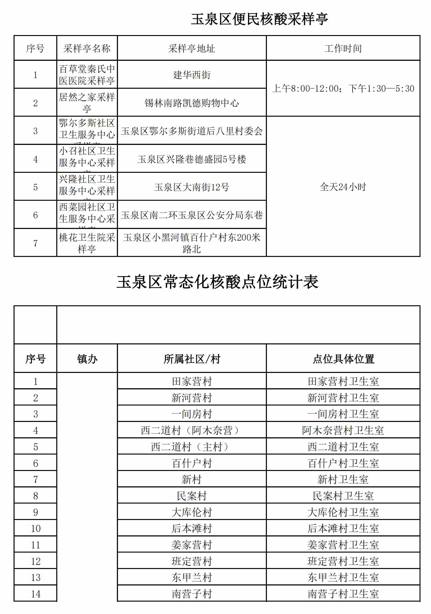 玉泉區(qū)關(guān)于開設(shè)常態(tài)化便民核酸檢測采樣點(diǎn)的通知