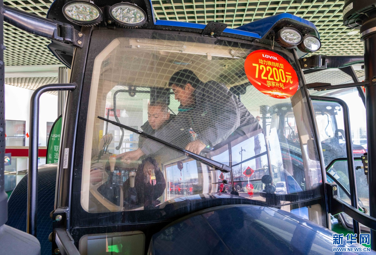 ??2月18日,在位于呼和浩特市玉泉區(qū)的一家農(nóng)機設備公司展銷大廳,農(nóng)戶在試駕拖拉機。新華網(wǎng)發(fā)(丁根厚 攝)