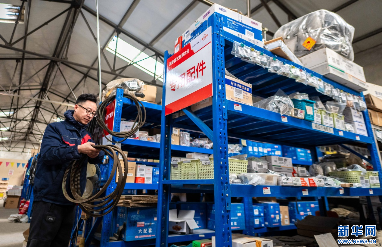 ??2月18日,在位于呼和浩特市玉泉區(qū)的一家農(nóng)機設備公司倉庫,工作人員在清點農(nóng)機具配件。新華網(wǎng)發(fā)(丁根厚 攝)