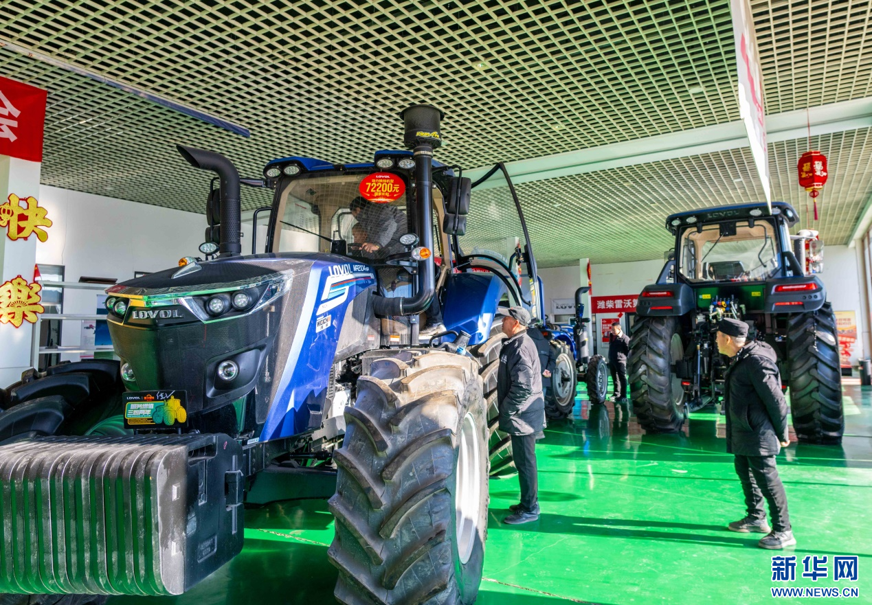 ??2月18日,在位于呼和浩特市玉泉區(qū)的一家農(nóng)機設備公司展銷大廳,農(nóng)戶在咨詢選購國家補貼拖拉機。新華網(wǎng)發(fā)(丁根厚 攝)