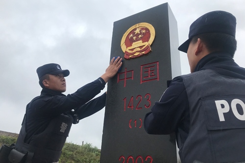 9月18日上午,內(nèi)蒙古額布德格邊境派出所民警在巡邊途中,擦拭沿途界碑,以獨有的方式向為國捐軀的英雄們致以崇高敬意。