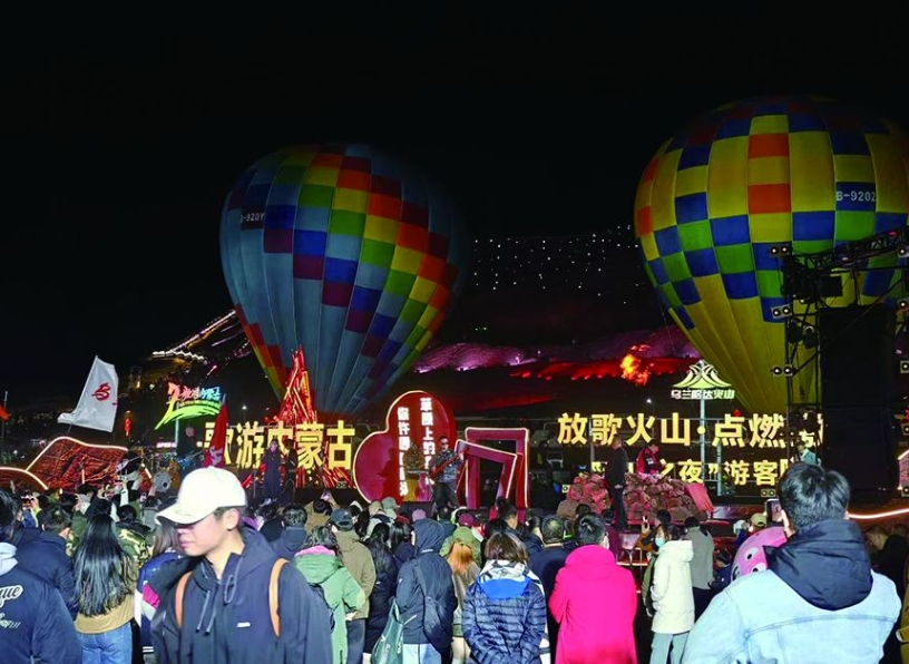 夜幕降臨,3號(hào)火山下的“歌游內(nèi)蒙古?游客嗨歌季”活動(dòng)將氛圍推向高潮。星空下,馬頭琴與電子樂(lè)跨界融合,激昂旋律在火山群間回蕩。游客圍繞篝火載歌載舞。活動(dòng)最后,盛大的煙花秀劃破夜空,為一天的游玩畫(huà)上句號(hào)。來(lái)自北京的游客劉易表示:“這是我第一次來(lái)烏蘭哈達(dá)火山,這里景致壯觀,文化活動(dòng)豐富,服務(wù)貼心,讓我感受到獨(dú)特的草原魅力。”