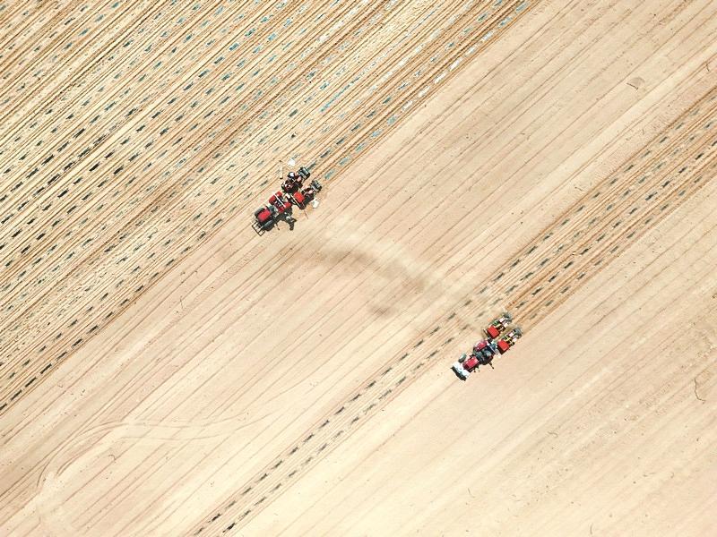 截至目前,海南區(qū)巴音陶亥鎮(zhèn)2.82萬畝農(nóng)田已經(jīng)種植完成95%以上,第一次澆水基本完成。(魯吟 攝)