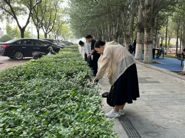 田永成今年66歲,精神矍鑠,手里拿著一把夾子,彎著腰仔細(xì)地在草坪上搜尋垃圾?!翱吹健莱怯形摇鞘星鍧嵢招袆?dòng)的倡議書(shū),我立馬就給隊(duì)員們打了電話,大家都特別積極,好多人報(bào)名參與?!碧镉莱尚χf(shuō),額頭上的汗珠順著臉頰滑落。