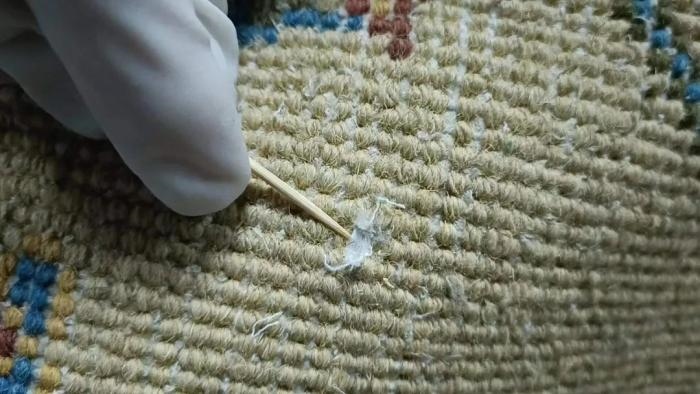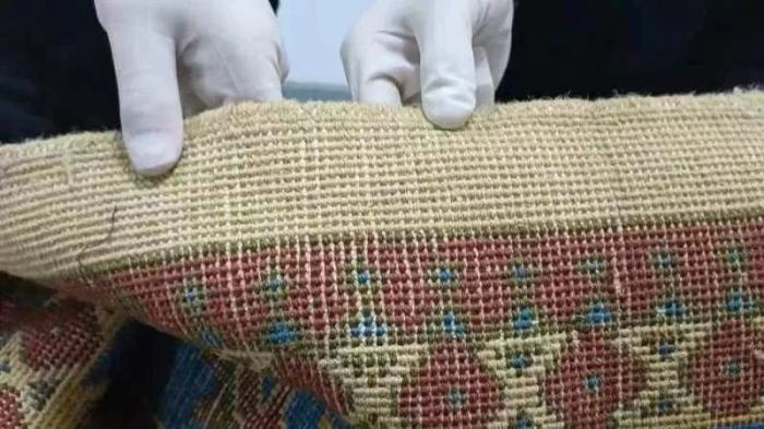 深圳郵局海關(guān)關(guān)員在對過境貨物開展監(jiān)管時發(fā)現(xiàn),1票包裹機檢圖像可疑,隨即對其開箱查驗。查驗發(fā)現(xiàn),該票包裹內(nèi)有一塊做工精致的地毯,編織到地毯內(nèi)的透明細(xì)塑料管中藏匿有細(xì)粉末一批,毛重11555.8克。經(jīng)現(xiàn)場試劑檢測,判斷為冰毒。目前,海關(guān)緝私部門已介入調(diào)查處理。
