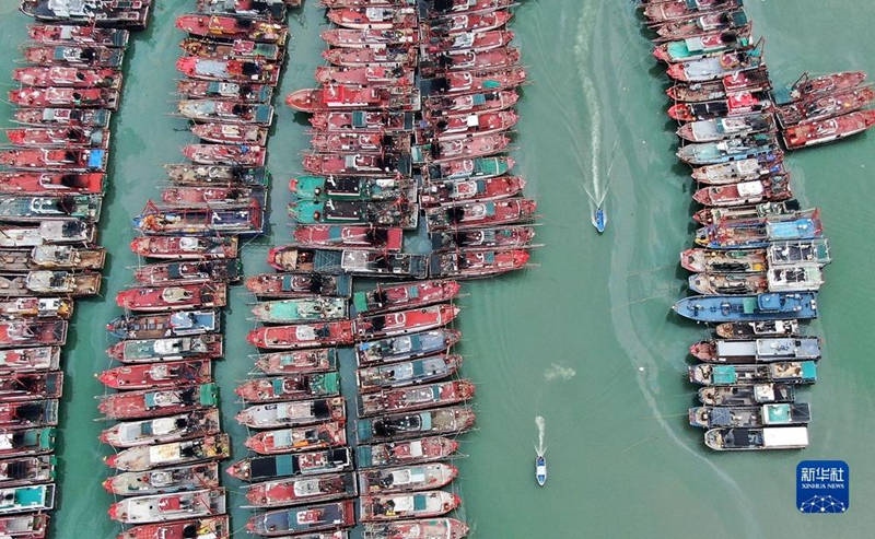 臺(tái)風(fēng)“蘇拉”靠近粵東近海,廣東省汕尾港避風(fēng)塘,漁船歸港避風(fēng)。