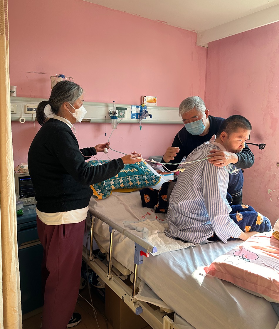 張昌碩身高一米八幾,張宏銀和鄭建英需要合力才能把他從床上推起來,為了省錢,除了需要專業(yè)醫(yī)護(hù)人員進(jìn)行的康復(fù)項(xiàng)目,比如針灸,或者要用理療設(shè)備,他們大多自己給孩子做康復(fù)——按摩他的全身,包括手指腳趾,每一個(gè)地方都不能錯(cuò)過。