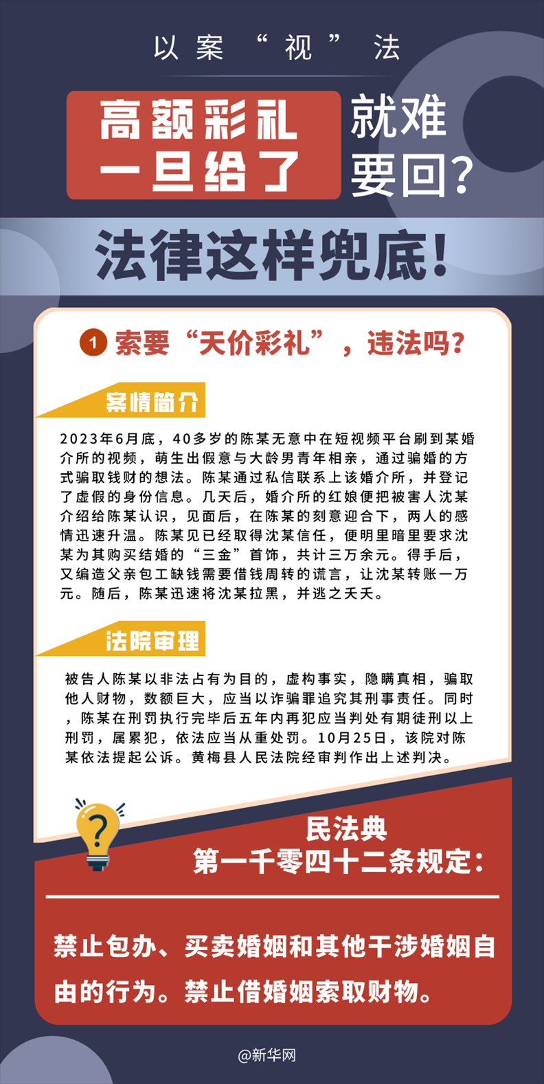 以案“視”法|高額彩禮一旦給了就難要回?法律這樣兜底!