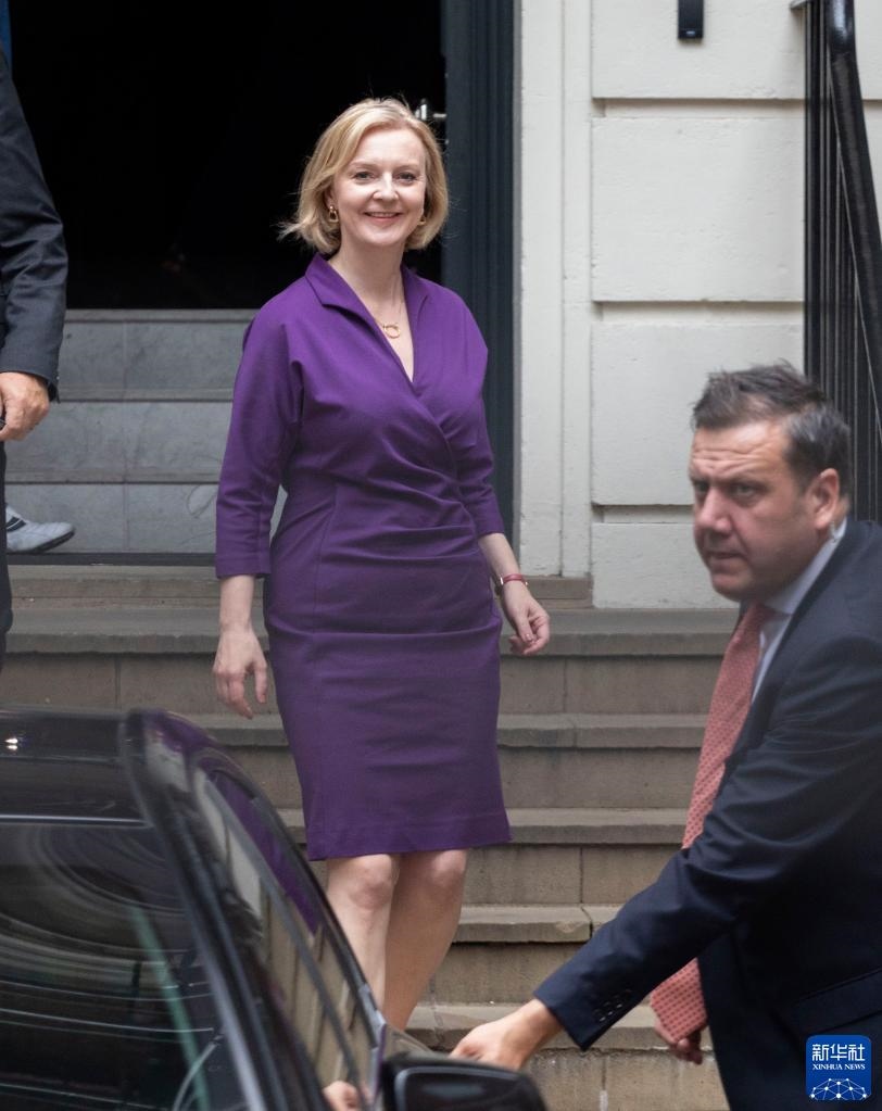 9月5日,在英國(guó)倫敦,當(dāng)選英國(guó)保守黨新黨首的伊麗莎白·特拉斯(左)離開保守黨總部。新華社發(fā)
