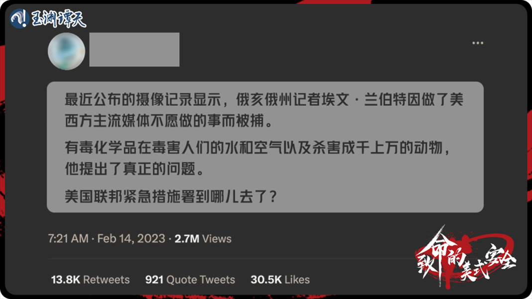 2月3日,俄亥俄州一列運(yùn)載有毒化學(xué)品的列車脫軌并著火,久久不能確定下來的污染范圍和程度,最終引發(fā)了全世界的擔(dān)憂。