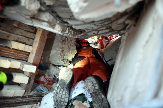 中國救援隊自8日到達當(dāng)?shù)貫?zāi)區(qū)后,按照土方給出的范圍,到地震重災(zāi)區(qū)哈塔伊省執(zhí)行搜救任務(wù)。在搜索中,救援隊努力搜索生命跡象,不放棄一絲希望。