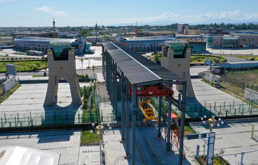 這是在新疆中哈霍爾果斯國際邊境合作中心拍攝的“空中陸橋”(無人機照片)。
