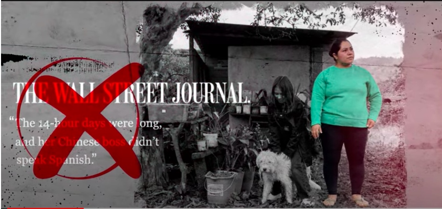 《華爾街日?qǐng)?bào)》在文章中提到厄瓜多爾科卡科多-辛克雷水電站附近兩名當(dāng)?shù)厝?,?duì)她們的話語斷章取義,以此暗示讀者,當(dāng)?shù)厝恕皩?duì)中國(guó)企業(yè)心懷不滿”以及中國(guó)公司“強(qiáng)迫當(dāng)?shù)貑T工加班且工作環(huán)境惡劣”。