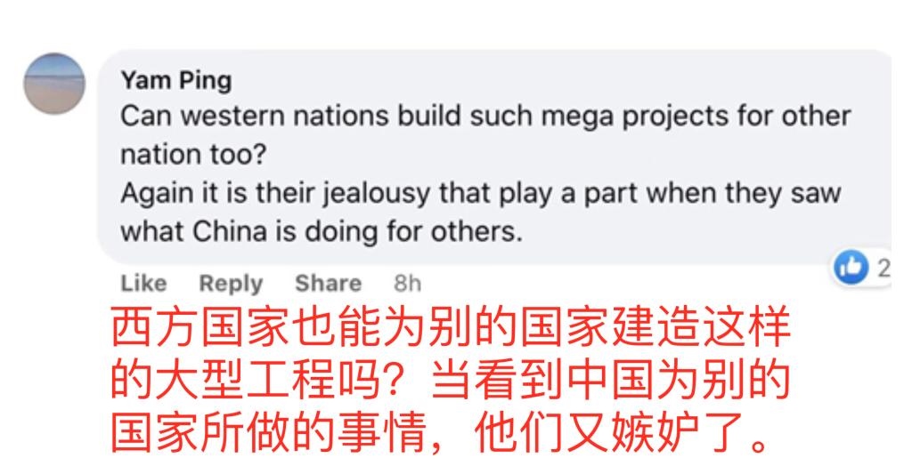 網(wǎng)友亞姆·平說:“西方國(guó)家也能為別的國(guó)家建造這樣的大型工程嗎?當(dāng)看到中國(guó)為別的國(guó)家所做的事情,他們又嫉妒了?!?/p>