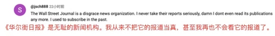 網(wǎng)友@jsch888說:“《華爾街日?qǐng)?bào)》是無恥的新聞機(jī)構(gòu)。我從來不把它的報(bào)道當(dāng)真,我甚至再也不會(huì)看它的報(bào)道了?!?/p>