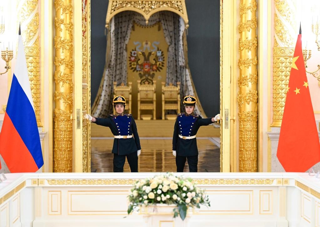 當(dāng)晚,普京在克里姆林宮為習(xí)近平主席舉行了隆重歡迎宴會。