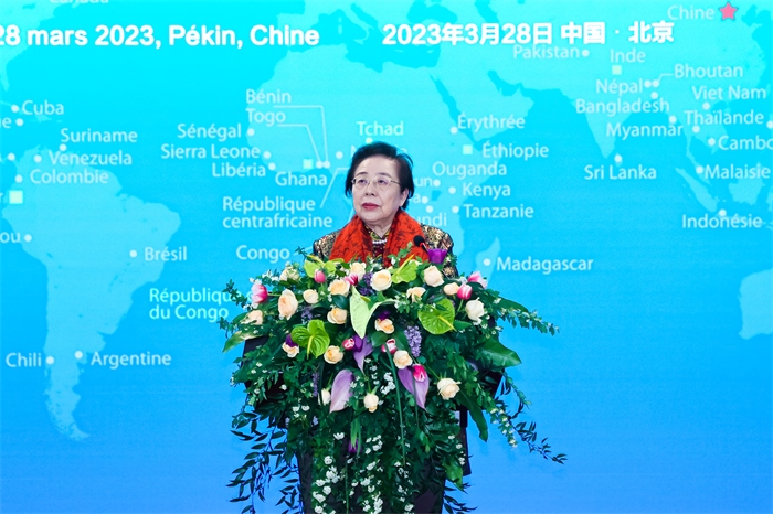 國(guó)際竹藤組織董事會(huì)聯(lián)合主席江澤慧致辭。國(guó)際竹藤組織供圖