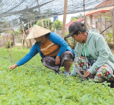 2019年開(kāi)始,試驗(yàn)站陸續(xù)在老撾各地建立新品種新技術(shù)推廣示范點(diǎn),至今已在全國(guó)4個(gè)鄉(xiāng)村建立起技術(shù)推廣示范點(diǎn),指導(dǎo)農(nóng)民進(jìn)行有機(jī)蔬菜、火龍果、水稻種植。金花村位于湄公河支流南俄河邊,曾經(jīng)一到雨季,農(nóng)地就會(huì)被淹。在中方技術(shù)支持下,村民開(kāi)墾荒地種植蔬菜,累計(jì)種植面積超過(guò)500畝?!叭?00多戶,現(xiàn)已有70多戶種植蔬菜,試驗(yàn)站提供優(yōu)質(zhì)種子、傳授種植技術(shù)和防治病蟲(chóng)害方法,投入少、產(chǎn)量高,讓這里成了首都郊外的蔬菜基地。隨著收入不斷增加,不少村民蓋了新房子、買(mǎi)了汽車(chē),日子越過(guò)越紅火。”村長(zhǎng)蘇里貢說(shuō)。