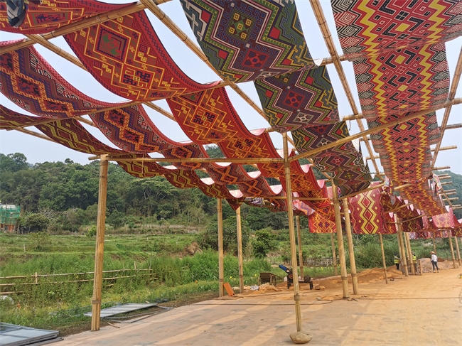 五指山市水滿鄉(xiāng)毛納村的黎錦。人民網(wǎng) 符園園攝