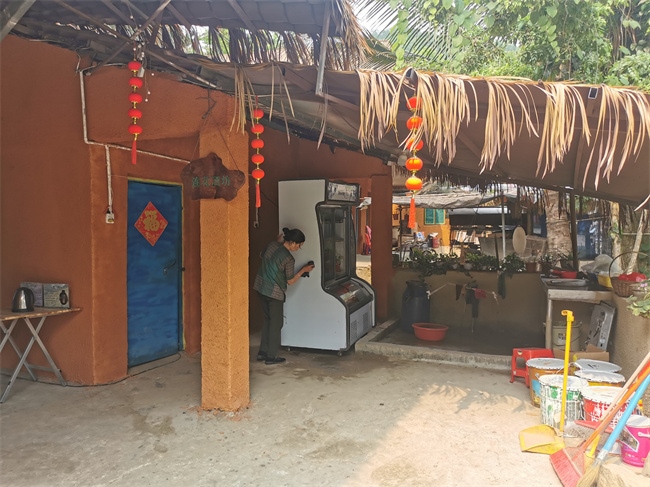 “山蘭酒已經(jīng)賣光了,只有黃姜糯米酒了。”王秋婷對(duì)前來問詢的村民解釋道。從前,王秋婷一家的經(jīng)濟(jì)來源主要依靠種茶和采茶。隨著毛納村的游客越來越多,王秋婷將自家庭院進(jìn)行改造,開起了酒坊和小商店,主要售賣自己釀制的山蘭酒和糯米酒、茶葉、椰子等農(nóng)特產(chǎn)品。“酒坊和商店的生意都還不錯(cuò)?!蓖跚镦眯χ鴮?duì)記者說。
