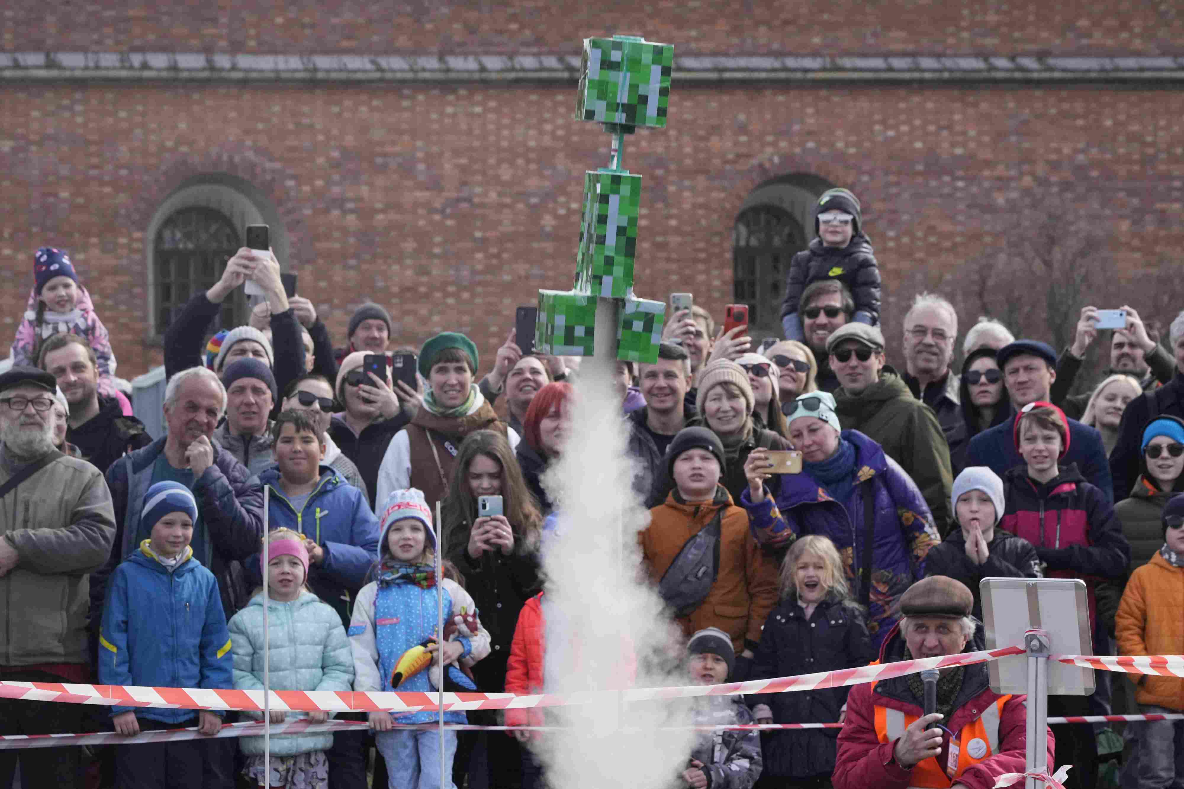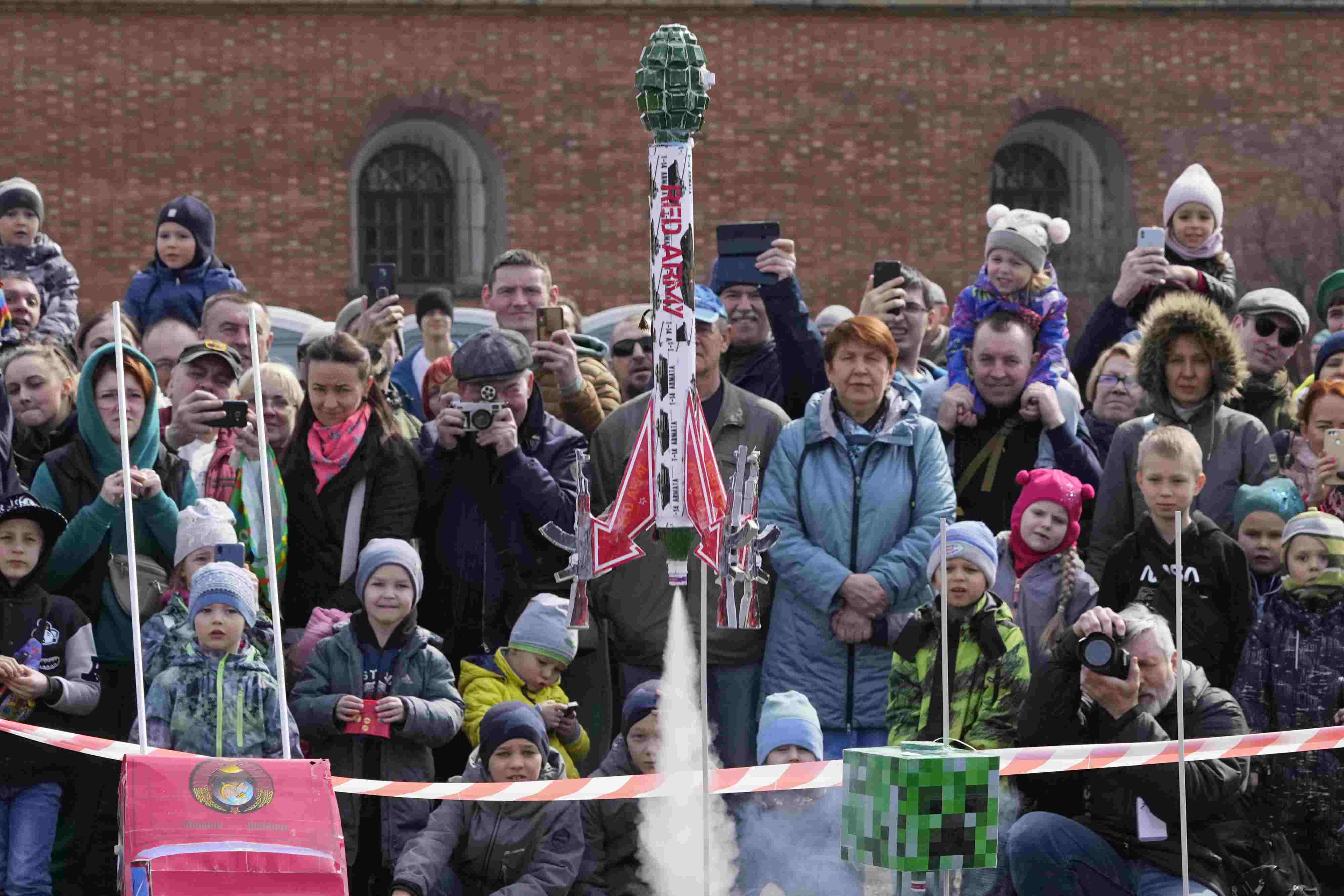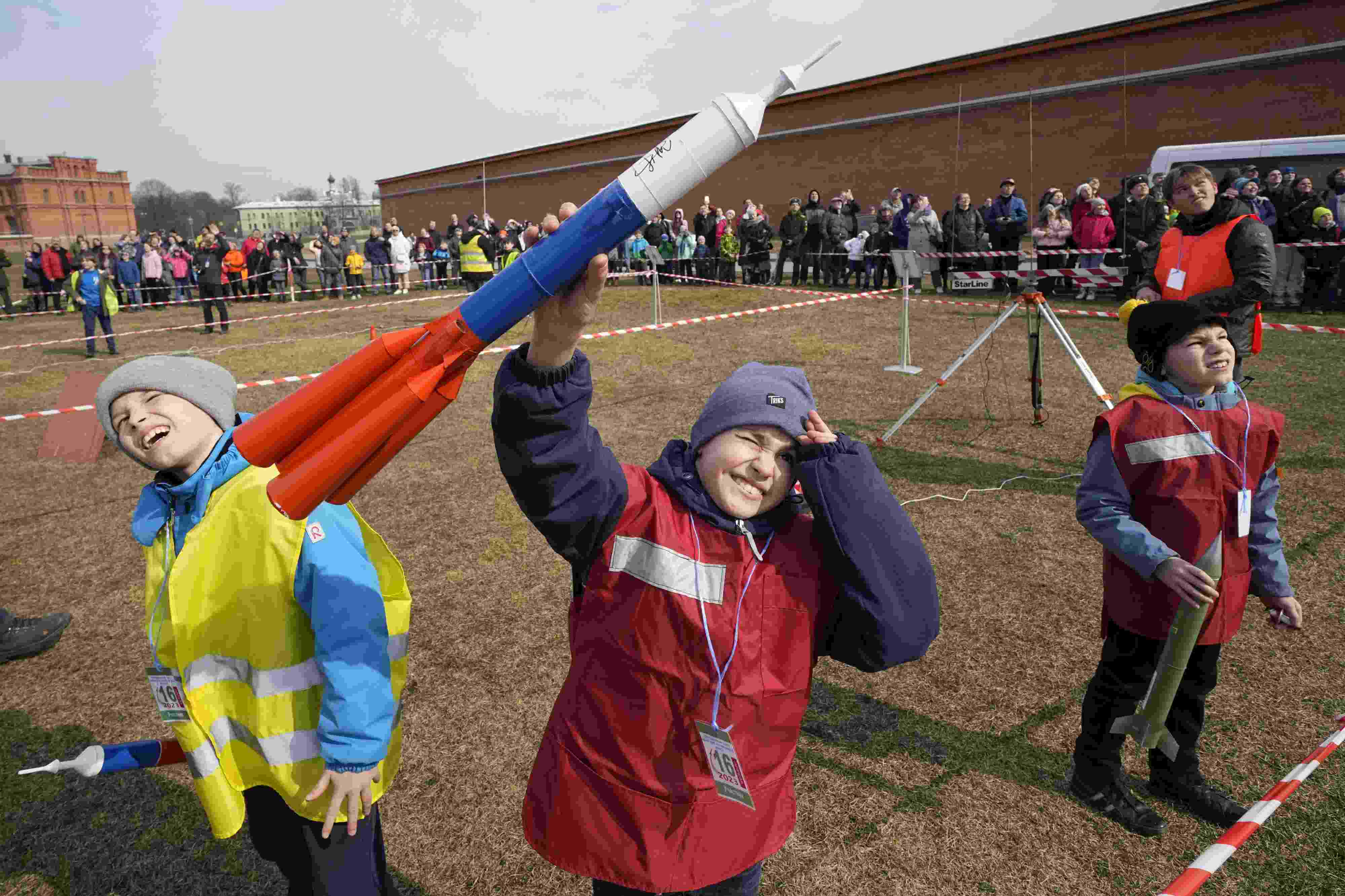 當(dāng)?shù)貢r間2023年4月16日,俄羅斯圣彼得堡,民眾發(fā)射火箭模型紀(jì)念人類首次太空飛行62周年。 視覺中國