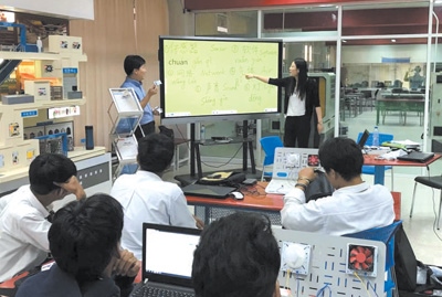 2016年3月,由天津渤海職業(yè)技術(shù)學院與泰國大城技術(shù)學院共同建設(shè)的全球首家魯班工坊正式揭牌,標志著中國職業(yè)教育走出國門,與其他國家分享優(yōu)質(zhì)職業(yè)教育資源。泰國魯班工坊采用“學歷教育+職業(yè)培訓”方式,匯聚先進教學裝備,集中優(yōu)質(zhì)雙語教學資源,設(shè)立了自動化生產(chǎn)線教學區(qū)、仿生機器人學習體驗區(qū)等15個教學實踐區(qū),讓學生們能夠更加直觀地在各種機器上操作演練。