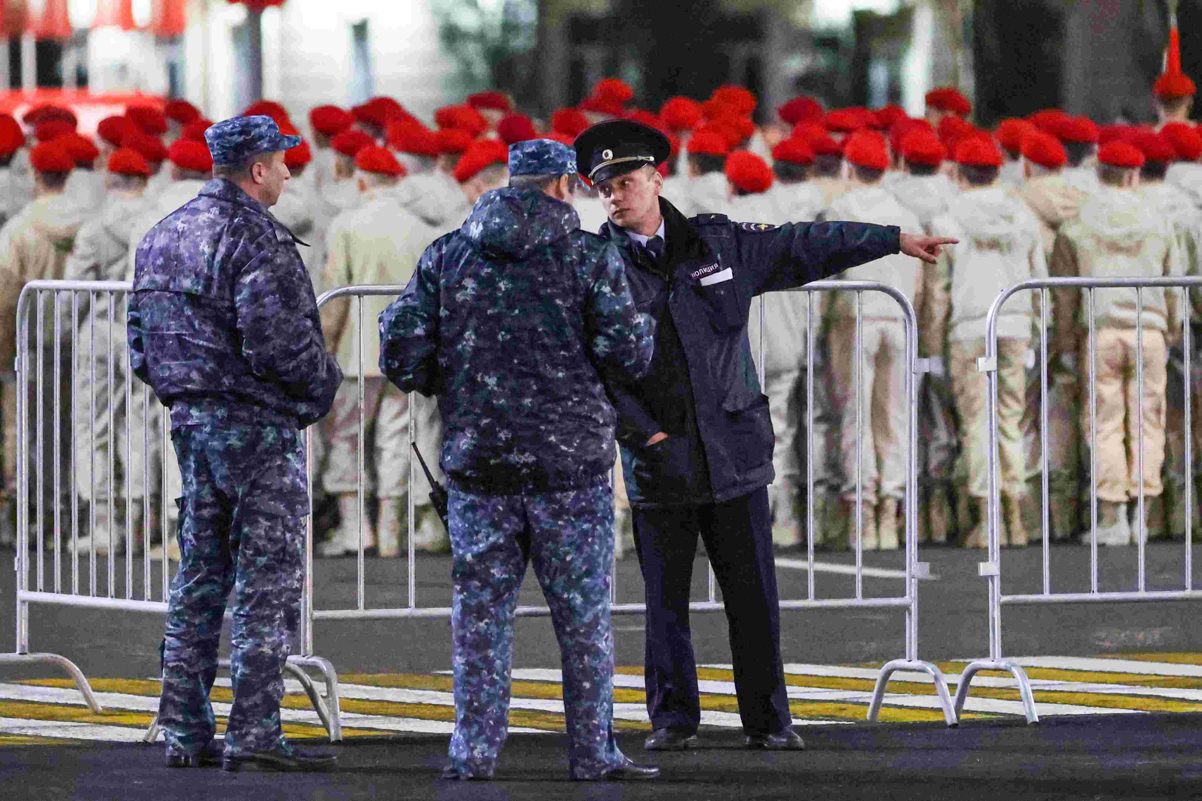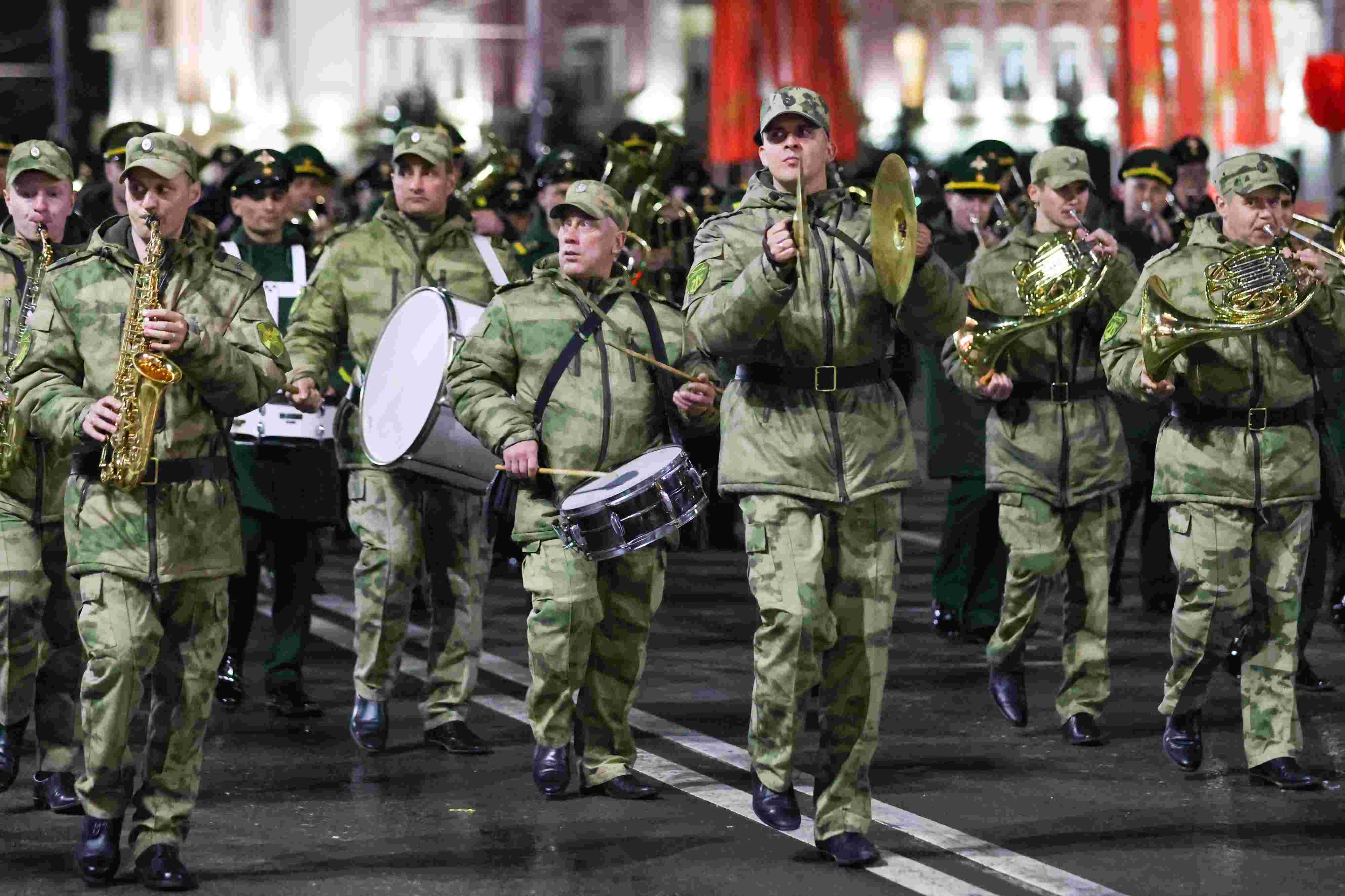 當(dāng)?shù)貢r間2023年5月2日,俄羅斯頓河畔羅斯托夫,士兵們參加勝利日閱兵彩排。 視覺中國