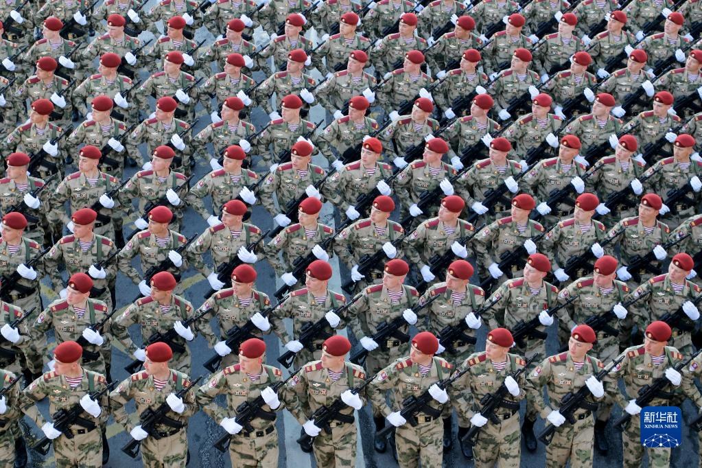 當(dāng)日,莫斯科舉行衛(wèi)國戰(zhàn)爭勝利日閱兵式彩排。