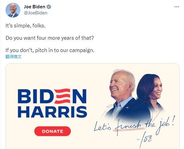 CNN注意到,在特朗普的直播結(jié)束后不久,美國(guó)總統(tǒng)拜登在社交媒體上發(fā)出了政治籌款呼吁,并配文稱(chēng),“很簡(jiǎn)單,伙計(jì)們。 你還想再那樣過(guò)四年嗎?如果你不喜歡,請(qǐng)參與我們的競(jìng)選活動(dòng)?!?/p>