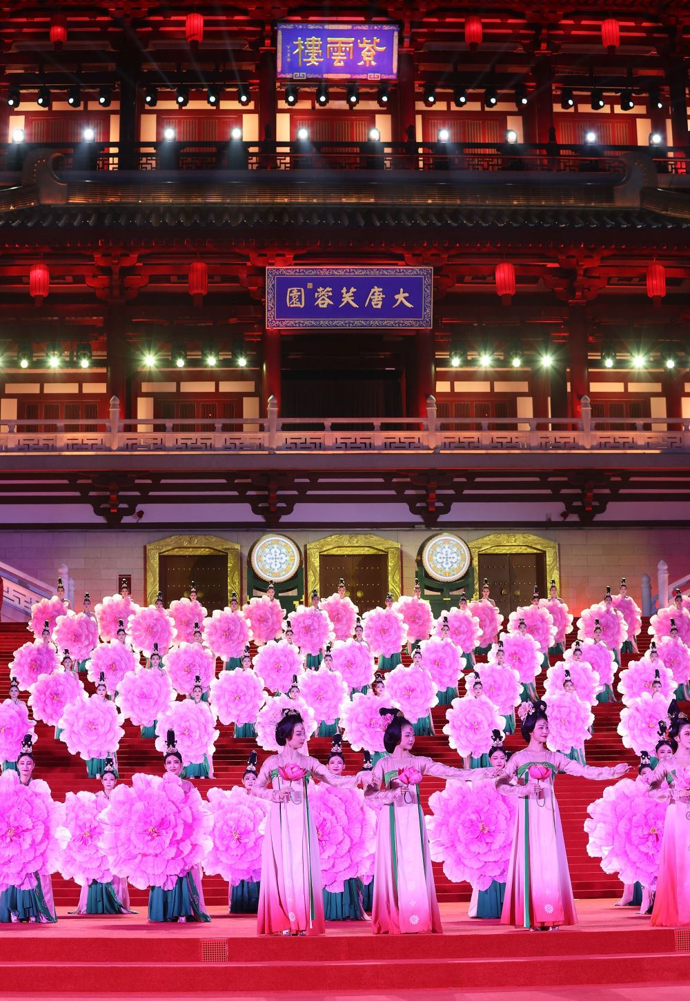 習(xí)近平夫婦為貴賓舉行唐朝傳統(tǒng)迎賓儀式。紫云樓前,禮樂和鳴,明快有力的古代佾舞、絢麗婀娜的芙蓉花舞,表達(dá)了古都西安人民的熱情好客,體現(xiàn)了中華文化兼容并蓄的精神風(fēng)貌。