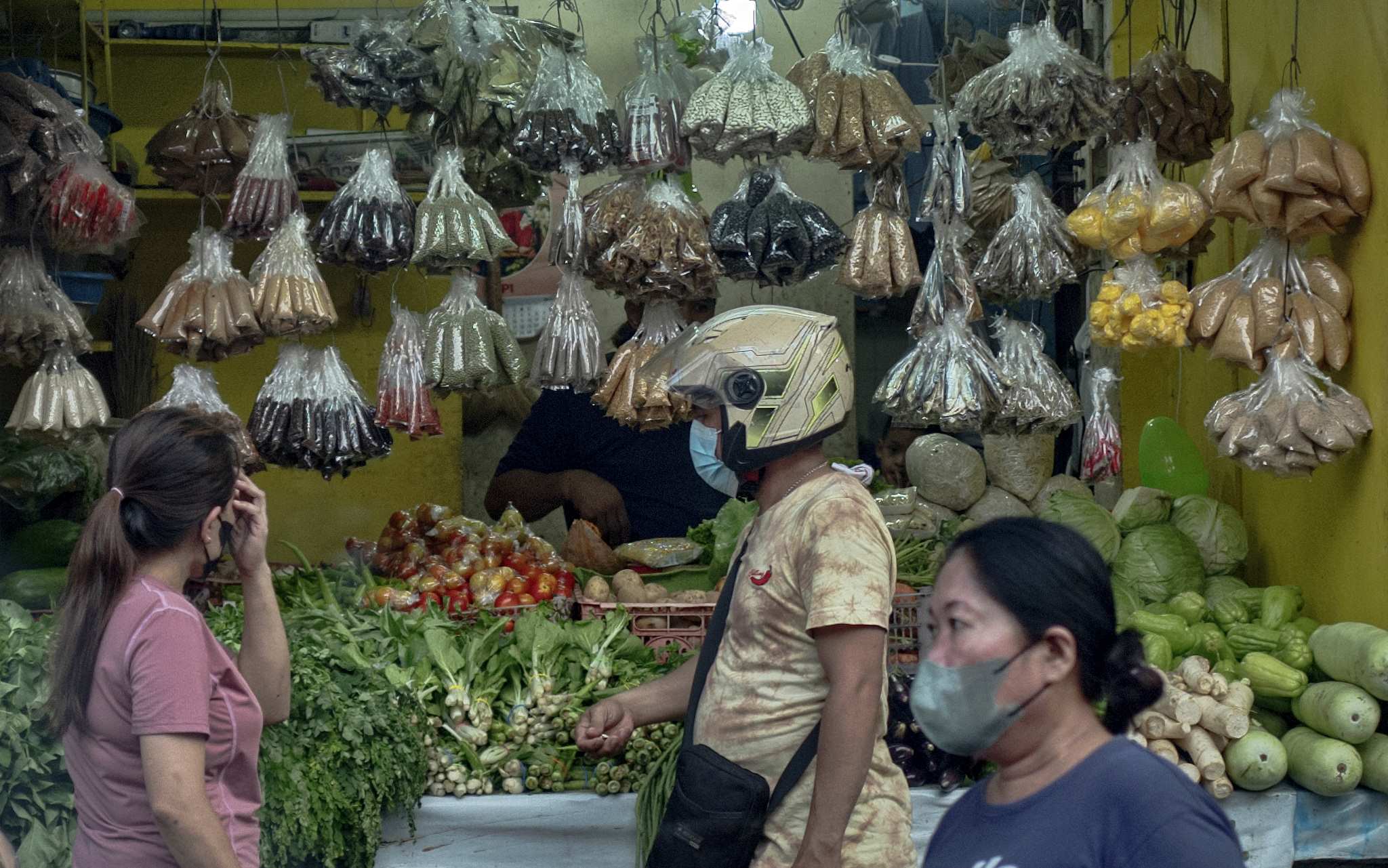 當(dāng)?shù)貢r間2023年4月19日,菲律賓馬尼拉,在奎松市的菜市場,塑料包裝的不同商品在出售。