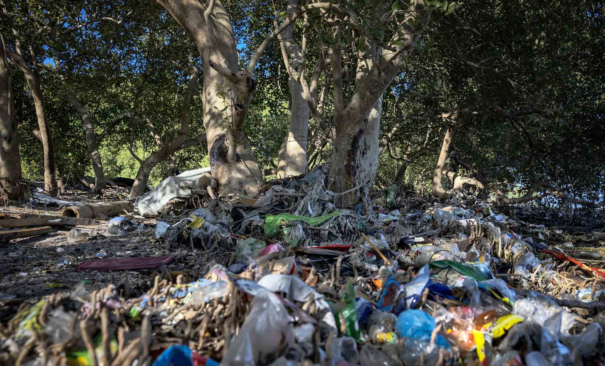 當(dāng)?shù)貢r間2023年4月19日,菲律賓馬尼拉,帕拉納克,自由島紅樹林上的塑料垃圾。