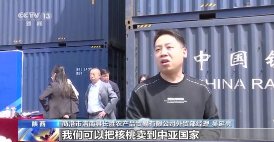 商洛市洛南縣長(zhǎng)勝農(nóng)產(chǎn)品貿(mào)易有限公司外貿(mào)部經(jīng)理 吳延亮:我們一年做幾千噸核桃、核桃仁,目前通過(guò)這個(gè)“商西歐”班列,我們可以把核桃賣到中亞國(guó)家,大量出口。