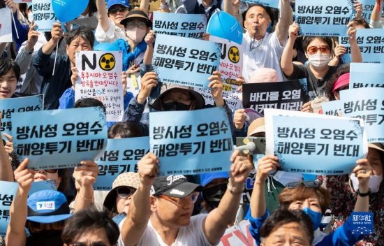 當日下午,韓國“韓日歷史正義和平行動”、《6·15共同宣言》韓方實踐委員會等市民團體和從各地趕來的民眾聚集在首爾市世宗大路,舉行“阻止日本放射性污染水排海全國行動”大會,敦促日本政府采取負責任的行動、停止推進核污染水排海計劃。