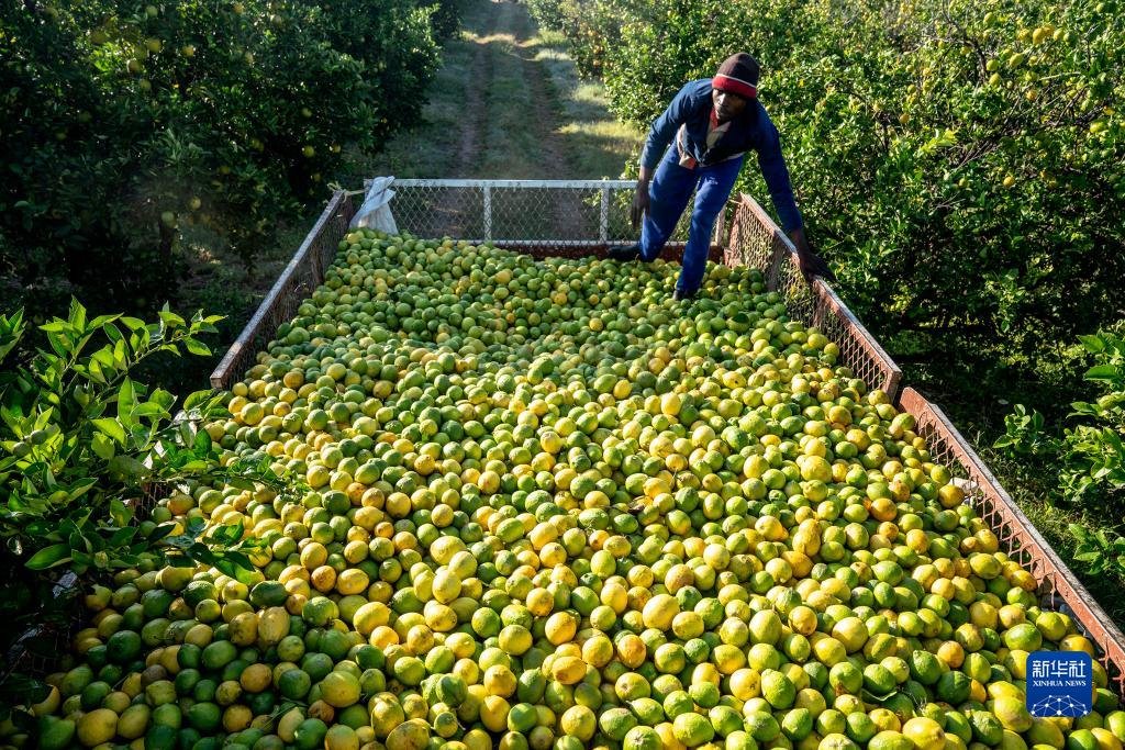 南非是世界主要柑橘出口國之一,每年2月至9月是南非柑橘的收獲季。新華社發(fā)(希拉茲·穆罕默德 攝)