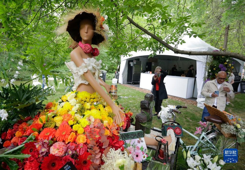 這是6月9日在加拿大溫哥華舉辦的“花卉城市之旅”花卉展上拍攝的花卉裝置藝術(shù)作品。新華社發(fā)(梁森攝)