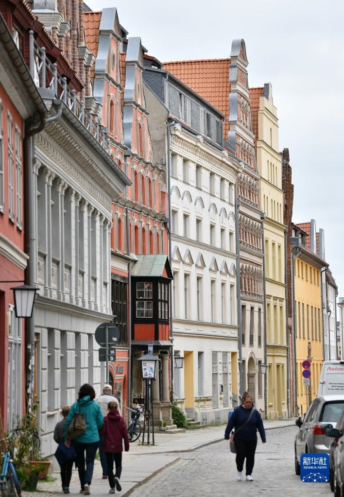 6月1日,行人在德國(guó)施特拉爾松德街頭行走。