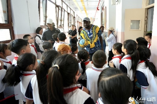 圖為貝雨欣和午亭小學(xué)的學(xué)生們交流。人民網(wǎng) 盧鵬宇攝