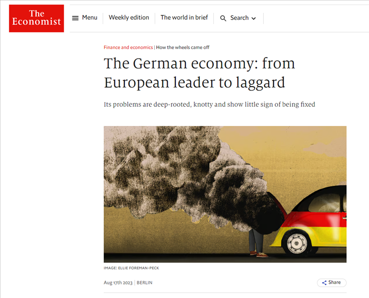 英國《經(jīng)濟(jì)學(xué)人》8月17日刊文指出,多年來,德國在傳統(tǒng)工業(yè)領(lǐng)域的優(yōu)異表現(xiàn),掩蓋其對新工業(yè)投資的缺乏。自滿和對財(cái)政審慎的癡迷導(dǎo)致公共投資太少??傮w而言,德國信息技術(shù)投資占GDP的比重還不到美國和法國的一半。除此之外,還有不斷惡化的地緣政治、減碳難度以及人口老化帶來的痛苦。