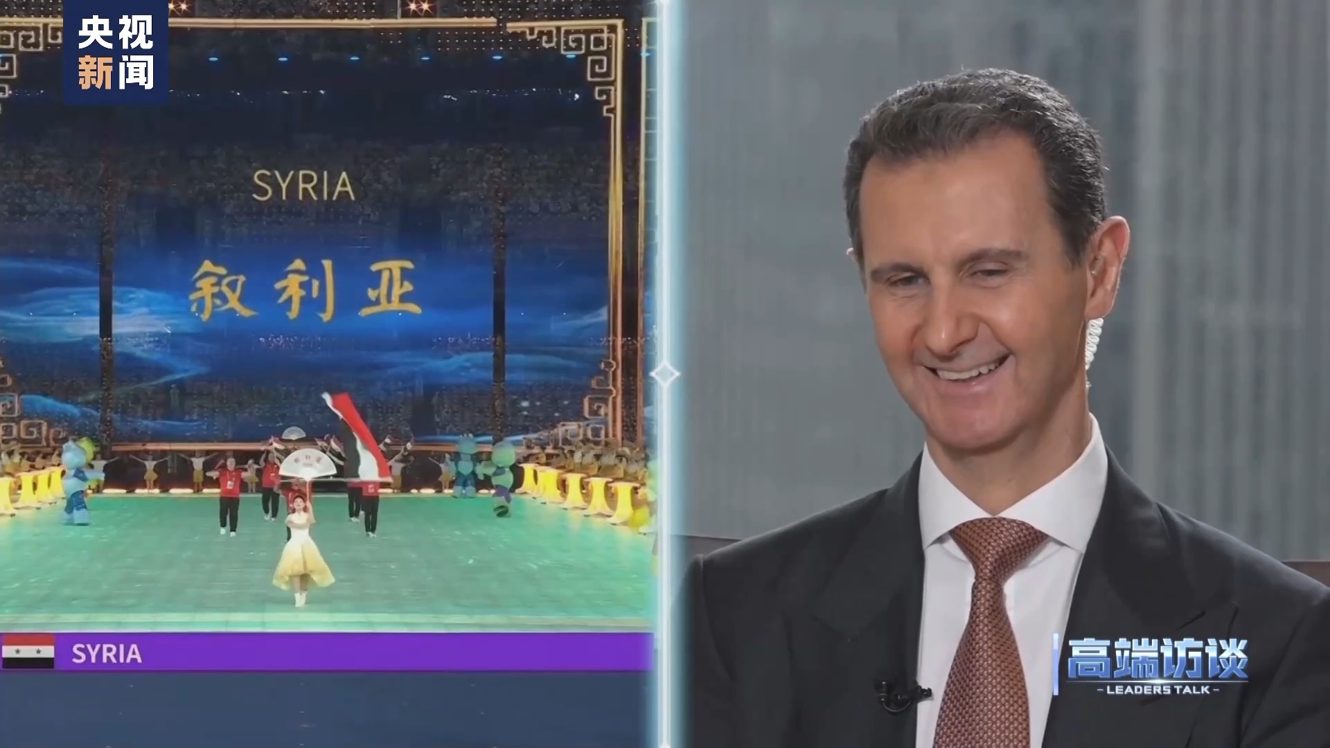巴沙爾:感謝你給我機會,通過你們頻道、你們節(jié)目向中國人民說這些話。我想向中國人民表示祝賀,祝賀你們過去幾十年取得的成就。事實證明,中國人民是偉大的人民。我不是嘴上說說,而是事實的確如此。我們祝愿中國實現(xiàn)國家愿景,在國際上,中國的愿景也是當今世界大多數(shù)國家的愿景。謝謝你的采訪!