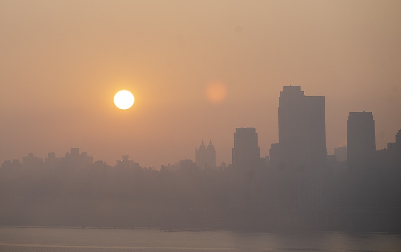 △當(dāng)?shù)貢r(shí)間7月5日,受加拿大森林大火影響,美國(guó)紐約處于煙霾之中。