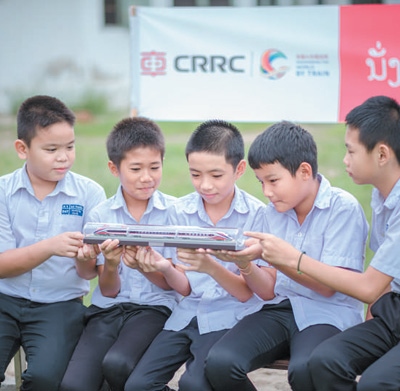 自2021年12月3日通車以來,中老鐵路為便利兩國民眾出行、促進貿易往來發(fā)揮了積極作用。圖為在由中國中車集團有限公司舉辦的“坐著火車看世界”老撾站活動中,萬象宗佩中學學生觀賞中老鐵路動車模型。本報記者 孫廣勇攝